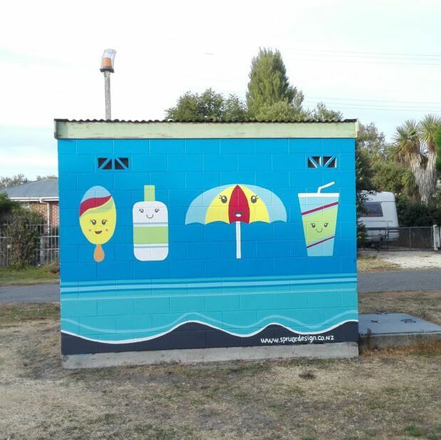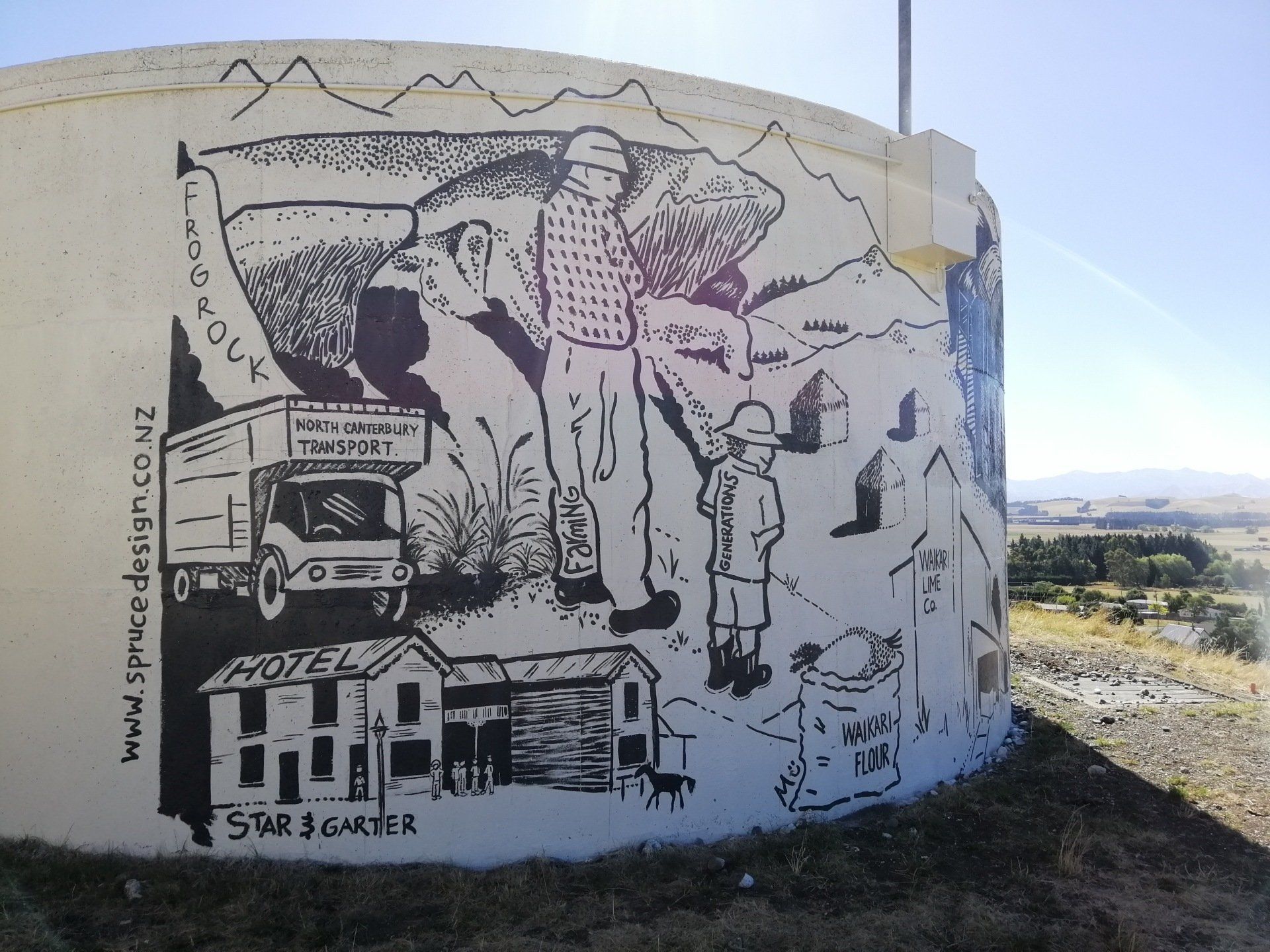 AMBERLEY / HURUNUI WAIKARI WATER TANK MURAL WAIAU EARTHQUAKE MURAL RANGIORA ALT KITCHEN MURAL