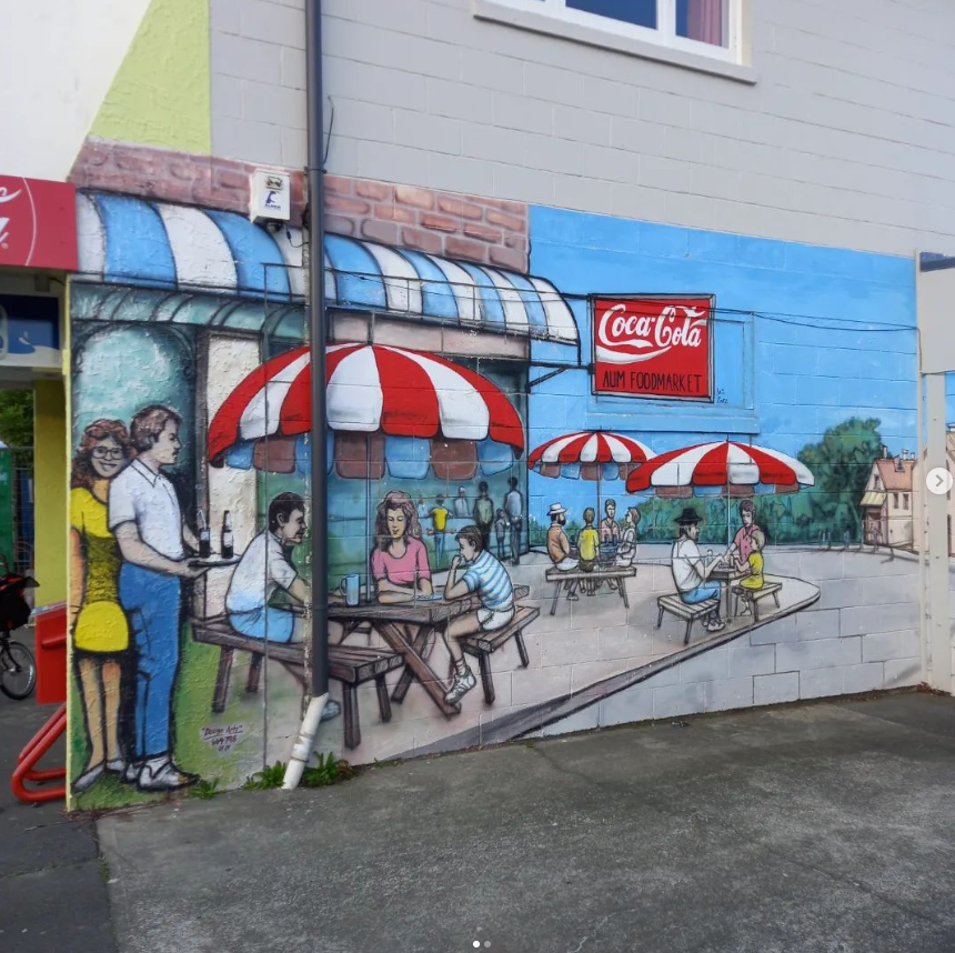 HORNBY MURAL HANMER SPRINGS POOL MURAL FERRY RD CHCH VILLAGE INN - SUMNER LEITHFIELD BEACH